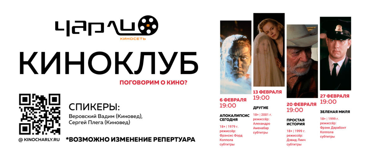 ВСТРЕЧИ КИНОКЛУБА в феврале в «Чарли».