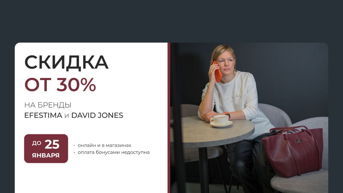 До 25 января в магазинах и онлайн скидка 30% на бренды Efestima и David Jones.
