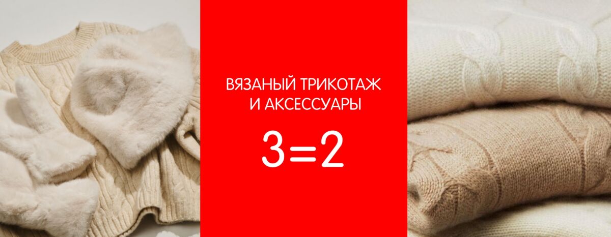 В магазине «FUNDAY» проходит акция 3=2 на вязаный трикотаж и вязаные аксессуары. Так же скидки до 70%.