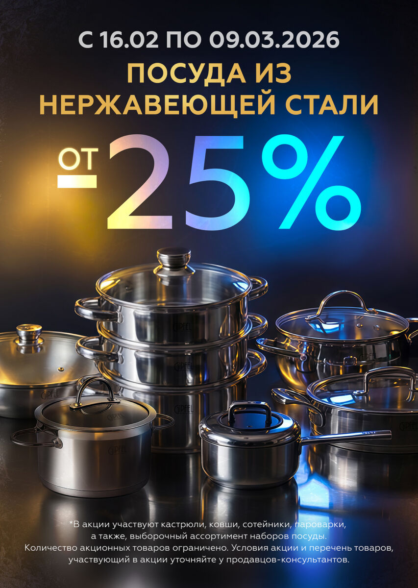 Дарим скидку от 25% на всю посуду из нержавеющей стали Gipfel: