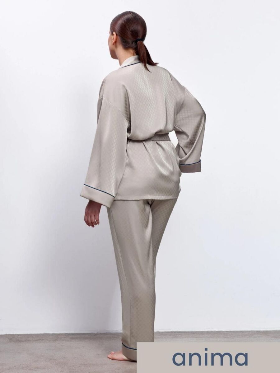 Продуманный крой, сдержанный оттенок папируса, контрастный кант и геометрический паттерн — так мы видим комфортный образ для дома на каждый день!
