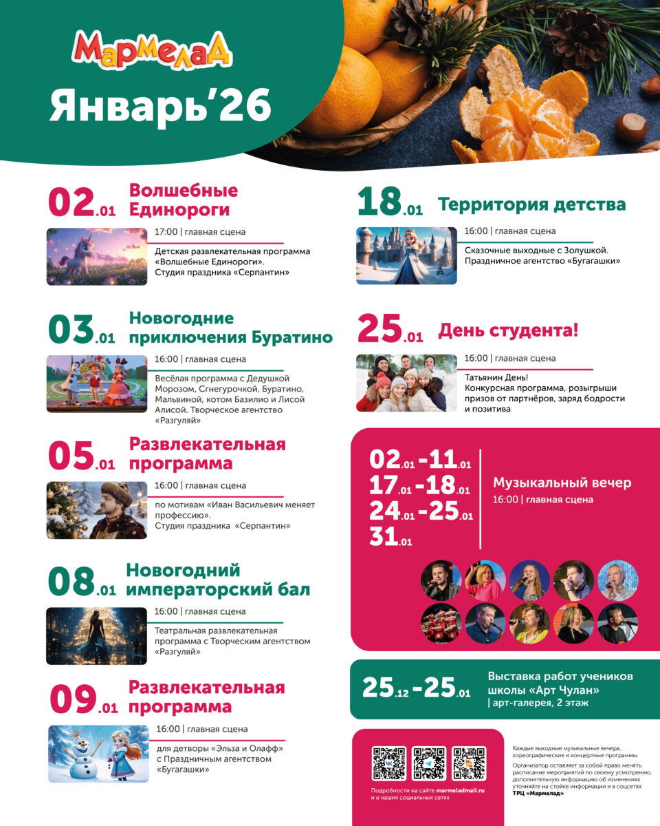 Календарь мероприятий в январе в ТРЦ «Мармелад».