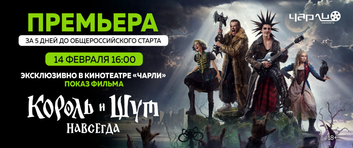 Поклонники «КиШ» и киноманы Таганрога получат уникальную возможность первыми оценить новую панк‑сказку о легендарных героях группы «Король и Шут». Эксклюзивно! на пять дней раньше официальной даты выхода в общероссийский прокат — 14 февраля 2026 года в 16:00 часов в кинотеатре «Чарли» предпремьерный показ фильма «Король и Шут. Навсегда».