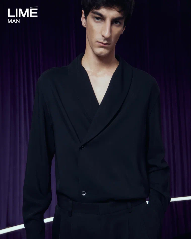 В новинках линии Woman акцент сделан на комплекты: топ с открытыми плечами из хлопкового денима дополняют джинсы объемного кроя с узкими манжетами и акцентными золотистыми пуговицами, а приталенный жакет с воротником-стойкой — укороченные брюки с разрезами в тон. Одна из ключевых новинок — асимметричное платье на одно плечо. Его стилисты LIMÉ предлагают носить самостоятельно или сочетать с комбинированными брюками-шароварами с широкой оборкой на поясе и манжетами.