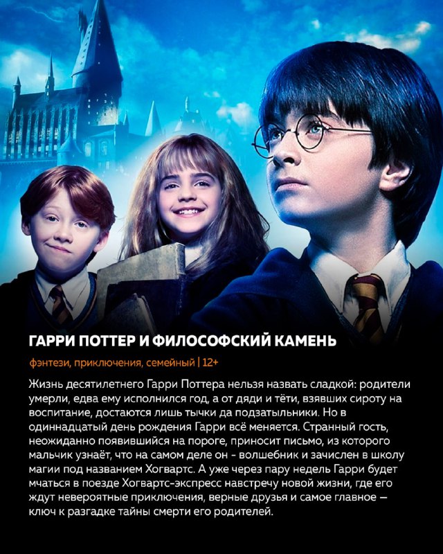 Спецпоказы: 🪄6 и 8 ноября «Гарри Поттер и философский камень» (предсеансовое «Волшебник») /фэнтези, семейный / 12+