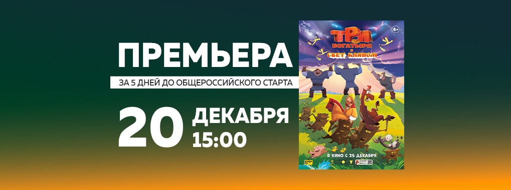 20 декабря в 15:00, за пять дней до общероссийского старта, вас ждёт невероятное приключение вместе с любимыми героями русских сказаний.