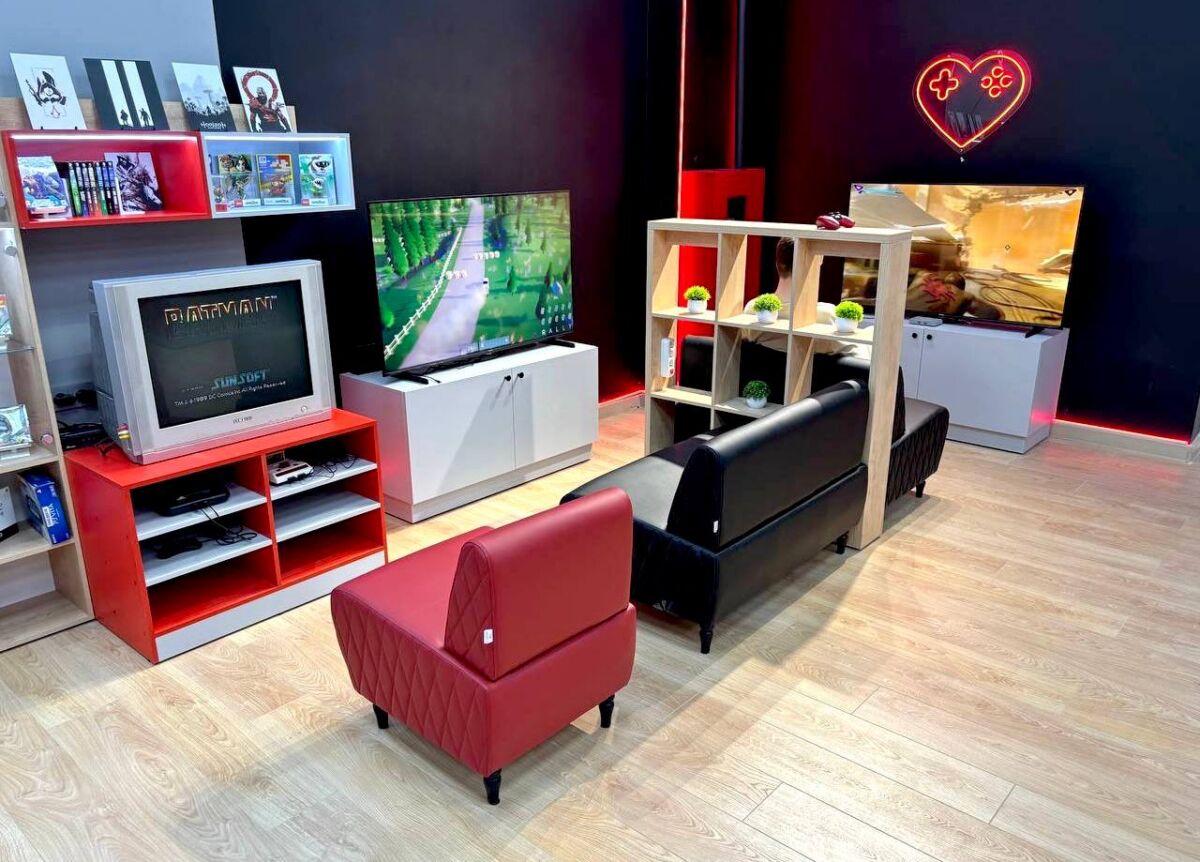 А для всех ценителей истории видеоигр организован небольшой ретро-уголок, где представлены игровые консоли и коллекционные издания видеоигр разных лет.